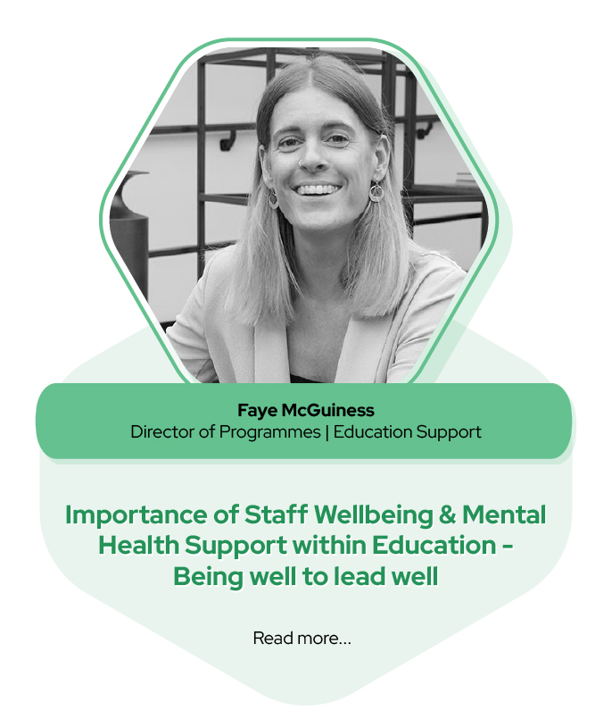 Faye McGuinness is Director of Programmes at Education Support, the mental health and wellbeing charity for the education workforce across the UK.  She is responsible for the development and delivery of programmes and services aimed at improving the mental health and wellbeing of the education workforce.